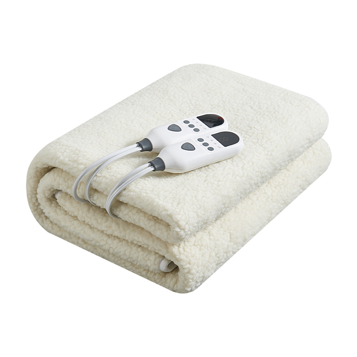 Couverture de lit chauffante électrique en laine synthétique Protection contre la surchauffe Double hélice fil chauffant télécommande lavable en Machine pour